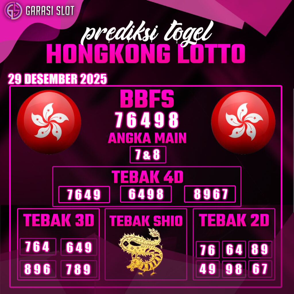 Prediksi togel Hongkong hari ini yang ditawarkan Prediksi GARASISLOT akan membantu Kamu dalam menyelesaikan catatan menyiapkan angka main. Prediksi GARASISLOT adalah halaman khusus untuk membocorkan angka prediksi seputaran pasaran togel terbesar di Indonesia. Hasil prediksi yang dirilis oleh tim khusus situs togel terpercaya GARASISLOT ini mempunyai tingkat akurat terbaik. Situs ini memungkinkan Kamu untuk mendapatkan informasi seputaran shio, buku mimpi, data keluaran terakhir serta menyaksikan live draw. Jadi cukup dalam satu website seluruh penikmat togel online dapat memperoleh informasi bermain. Prediksi Garasislot juga memiliki rekomendasi bandar togel terpercaya yang siap melayani dan membayar seluruh kemenangan hadiah jackpot.