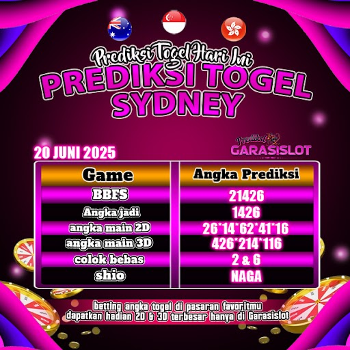 Togel SYDNEY adalah pasaran terlaris yang hampir tidak pernah tergantikan. Setiap harinya ribuan pengguna memburu dan mencari prediksi jitu seputaran togel Sydney hari ini. Nah, dibawah ini adalah prediksi togel Sydney Lotto 20 JUNI 2025 terbaik.